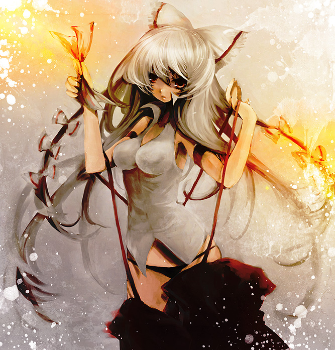 1girlbreastsfemale focusfirehair ribbonlong hairpantiespantsribbonshirtsleevelesssleeveless shirtsolosuspendersunderwearundressingvery long hairwhite hair