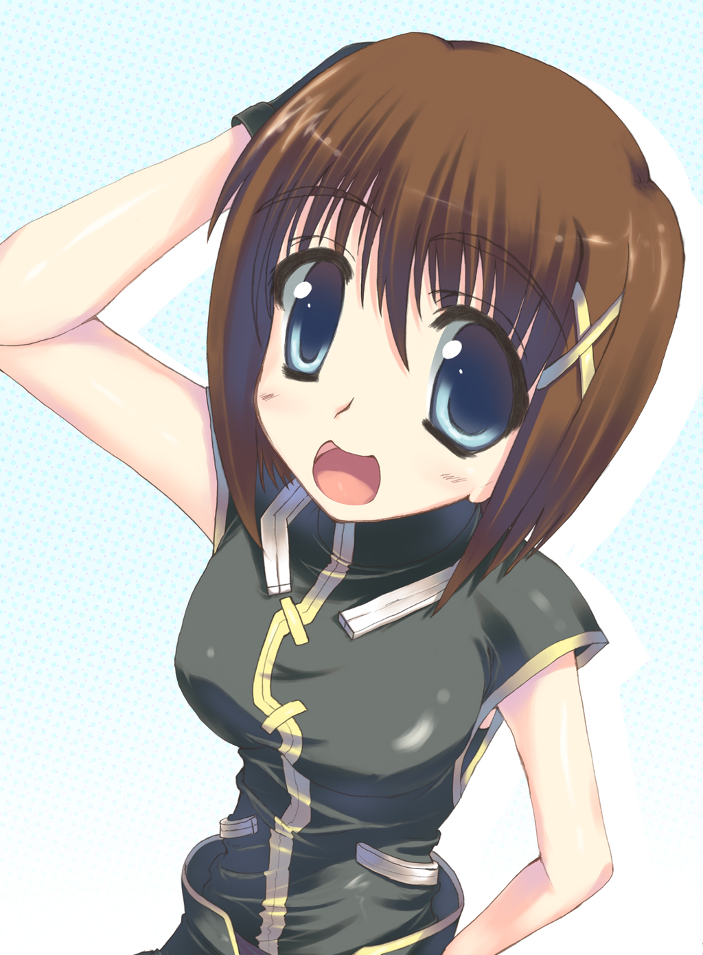 00s1girlbad anatomyblue eyesbrown hairfemale focushair ornamentpoorly drawnsolox hair ornament