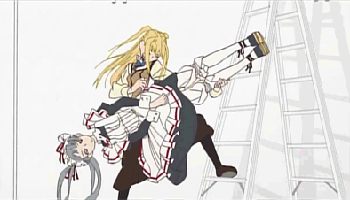 hiiragi kagami, lucky star, 00s, blue eyes, blush, panties, purple hair, ribbon, school uniform, serafuku, skirt, twintails, underwear, white panties