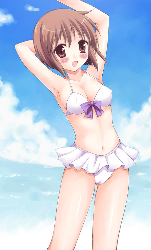 ookaji hiroyuki, karakuri chachamaru, mahou sensei negima!, highres, official art, scan, 1girl, feet, no shoes, solo, swimsuit