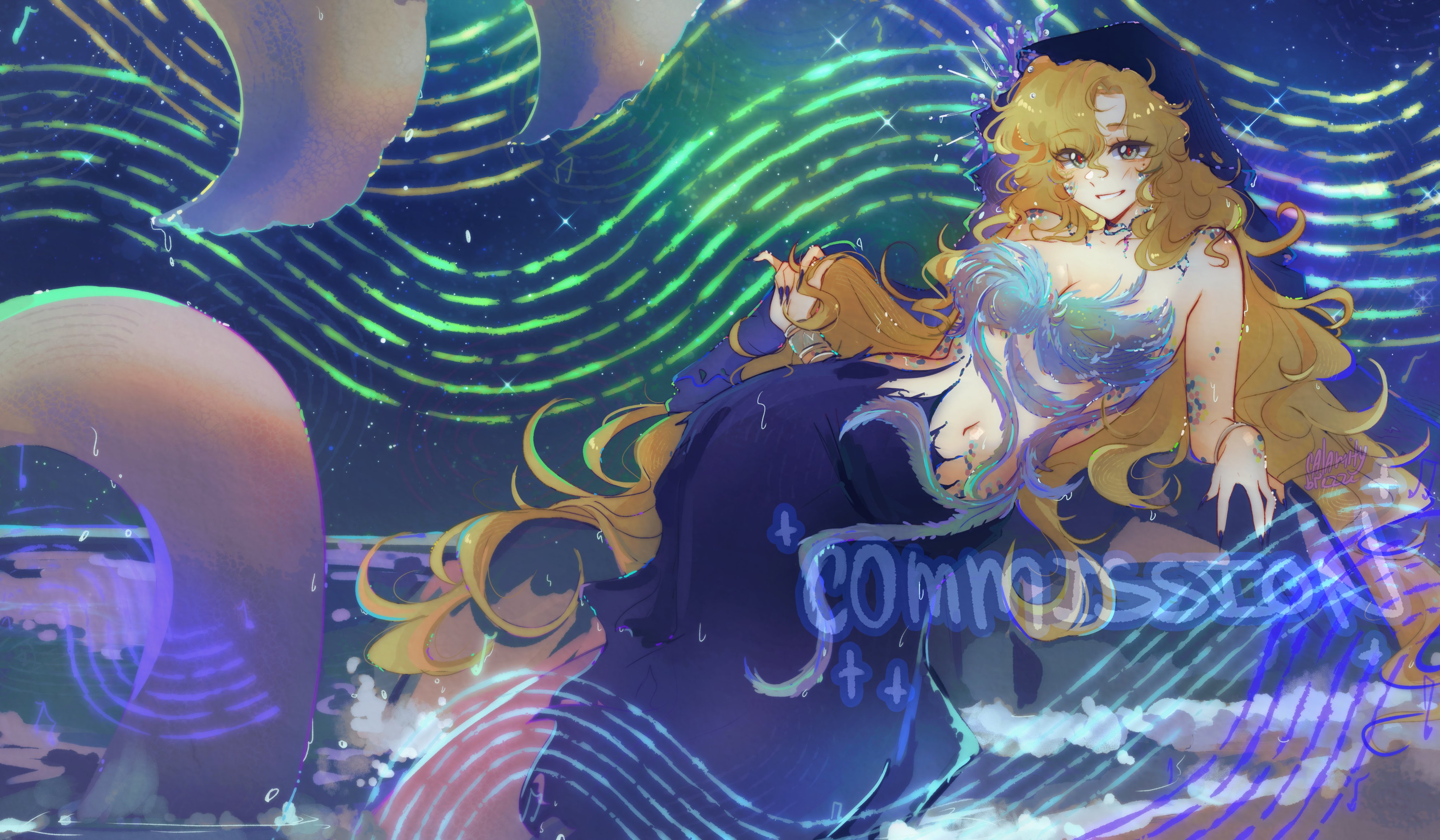 kneesocks (psg), scanty (psg), panty & stocking with garterbelt, absurdres, highres, 2girls, blue hair, colored skin, demon girl, demon tail, demon wings, green eyes, green hair, gun, holding, holding gun, holding scythe, holding weapon, kneehighs, looking at viewer, multiple girls, pillldo, red skin, revealing clothes, scythe, siblings, sisters, socks, tail, weapon, wings