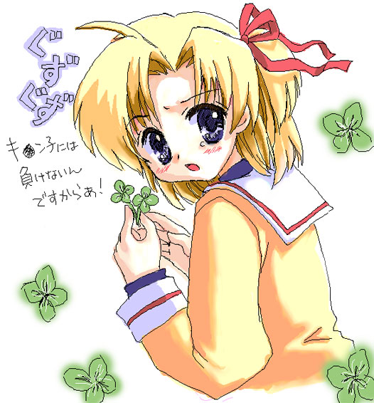 00s1girlblonde hairblue eyescloverfemale focusfour-leaf clovergenderswaphair ribbonoekakiopen mouthribbonshort hairsolo