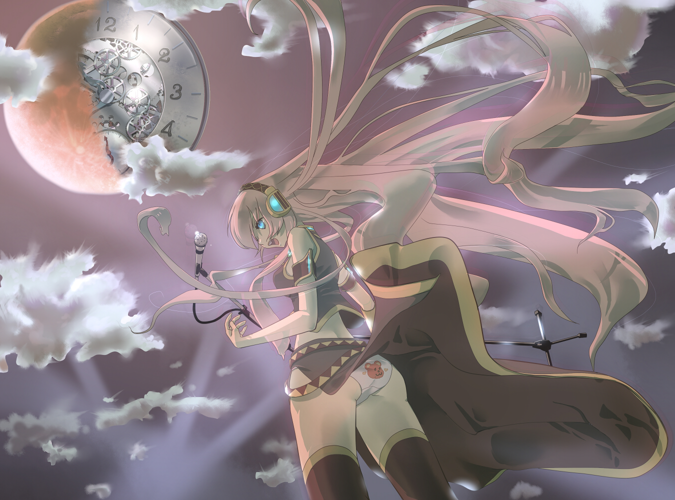 omutatsu, hatsune miku, magical mirai miku, magical mirai miku (2025), magical mirai (vocaloid), vocaloid, absurdres, commentary, highres, 1girl, absurdly long hair, aqua hair, arm belt, armpit crease, asymmetrical bangs, bare shoulders, black jacket, black shirt, black skirt, blue eyes, braid, closed mouth, cowboy shot, cropped shirt, dark background, floating clothes, floating hair, glowing, hair ornament, jacket, jewelry, layered skirt, lens flare, long hair, long sleeves, looking at viewer, lustrous (vocaloid), midriff, necklace, off shoulder, open clothes, open jacket, see-through skirt layer, shirt, skirt, sleeveless, sleeveless shirt, small stellated dodecahedron, smile, solo, star (symbol), star hair ornament, star in eye, symbol in eye, twin braids, twintails, very long hair