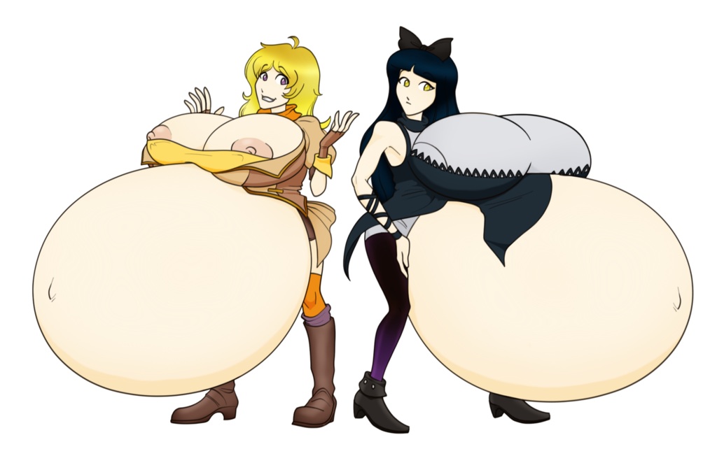 bellybig bellyblack hairblonde hairbowcat earsclothedclothingduoeyesfemaleFlag for Deletionhumannipplespregnantready to pop