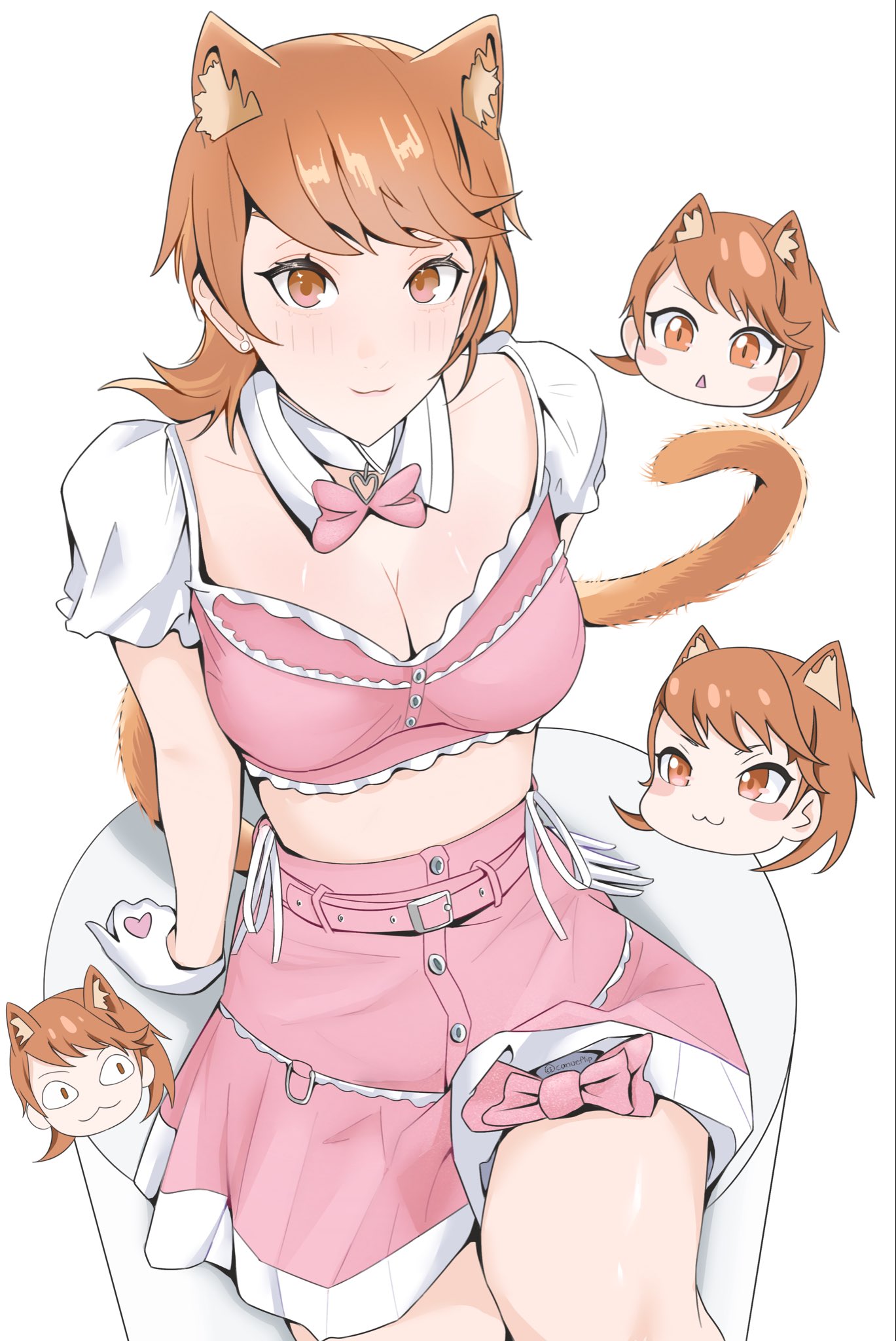 :31girlalternate costumeanimal ear fluffanimal earsarm supportbeltbelt buckleblushblush stickersbowbowtiebreastsbrown eyesbrown hairbucklecat earscat girlcat tailchokercleavageclosed mouthcollarbonecrop topdetached collarearringsextra earsfeet out of frameglovesheartheart chokerheart printjewelrylarge breastslooking at viewermidriffminiskirtpink beltpink bowpink bowtiepink skirtprint glovesshort hairsittingskirtsmilesolostud earringstailthigh bowwhite backgroundwhite chokerwhite gloves