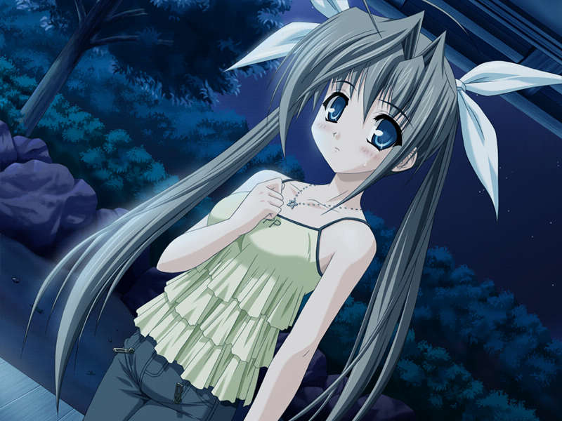 acid head, yuzuhara konomi, to heart (series), to heart 2, duplicate, highres, 00s, 1girl, barefoot, bed, black hair, breasts, brown eyes, female focus, flat chest, lying, no panties, pussy, pussy juice, red skirt, school uniform, serafuku, skirt, solo, spread legs, twintails