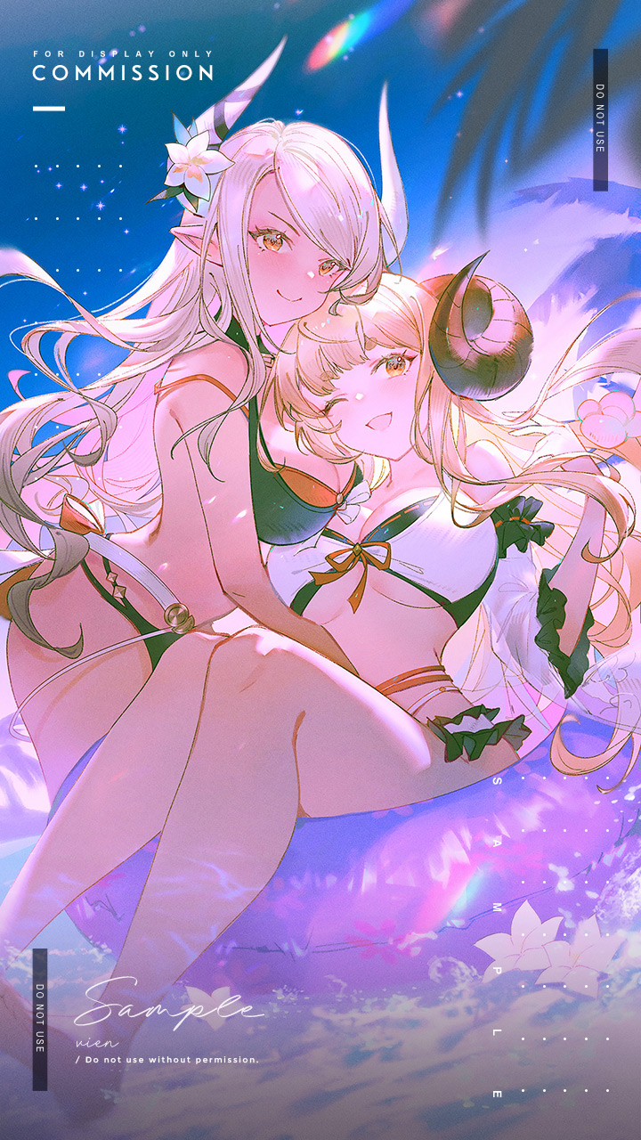 aigis (persona), koromaru (persona), shiomi kotone, persona, persona 3, persona 3 portable, commentary request, highres, korean commentary, 2girls, angel, angel and devil, angel wings, animal, barefoot, black dress, blonde hair, blue eyes, blush, bow, brown background, brown hair, chibi, chibi only, closed mouth, demon girl, demon horns, demon tail, demon wings, dog, dress, full body, halo, heart, holding, holding animal, holding dog, holding pitchfork, horns, licking lips, looking at viewer, multiple girls, one eye closed, pitchfork, red bow, red eyes, red horns, short hair, smile, tail, tongue, tongue out, wings, xikq0py