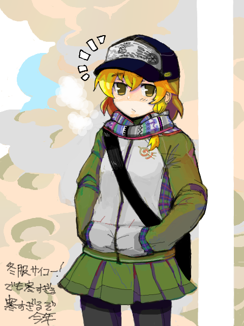1girlalternate costumeblonde hairbraidcasualcontemporaryfemale focushatpantyhosescarfskirtsoloyellow eyes