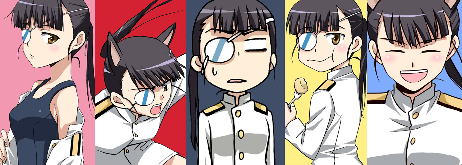 00s1girlanimal earsblack haireyepatchmultiple expressionsone-piece swimsuitponytailschool swimsuitswimsuit