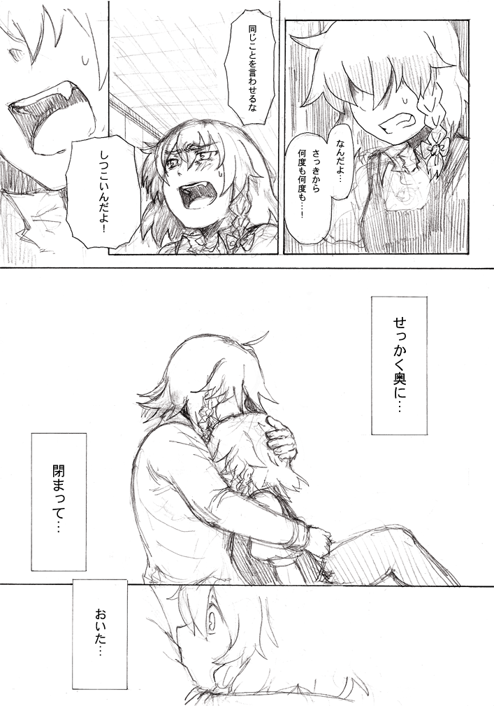 hiroyama hiroshi, arima miyako, tsukihime, 00s, 1girl, :d, animal, arm up, barefoot, brown hair, cat, crop top, denim, denim shorts, feet, female focus, flat chest, flower, green eyes, hair flower, hair ornament, in tree, legs, long hair, midriff, navel, open mouth, shorts, sitting, sitting in tree, smile, solo, toes, tree