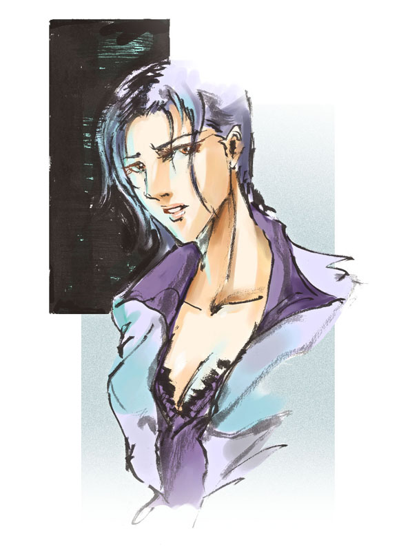 yomiko readman, read or die, 00s, 1girl, blue eyes, blush, bra, female focus, glasses, lingerie, open clothes, open shirt, shirt, solo, underwear