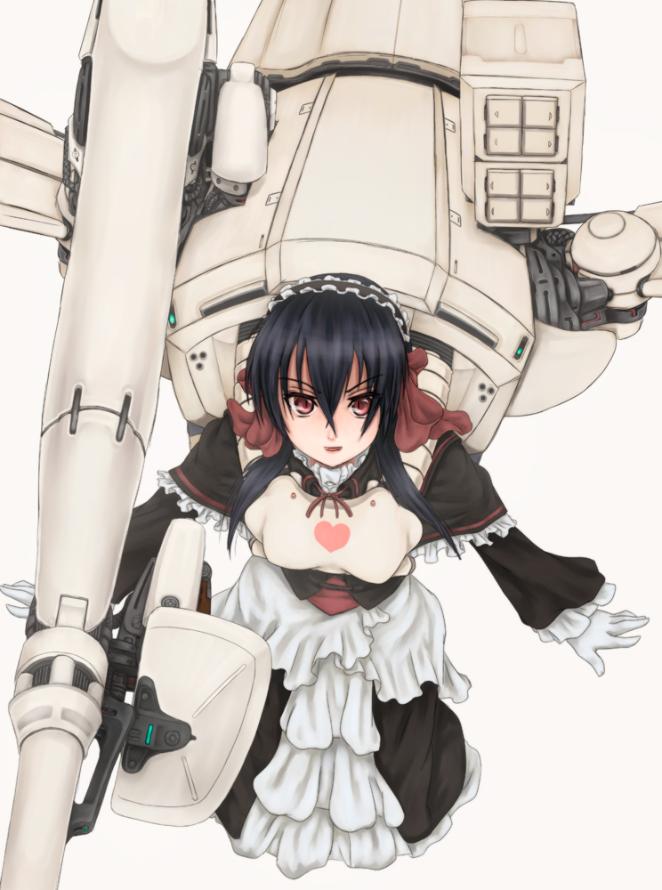ribucci, suiseiseki, rozen maiden, 00s, brown hair, headscarf, heterochromia, lolita fashion, long hair, simple background, solo, very long hair, white background, white headscarf