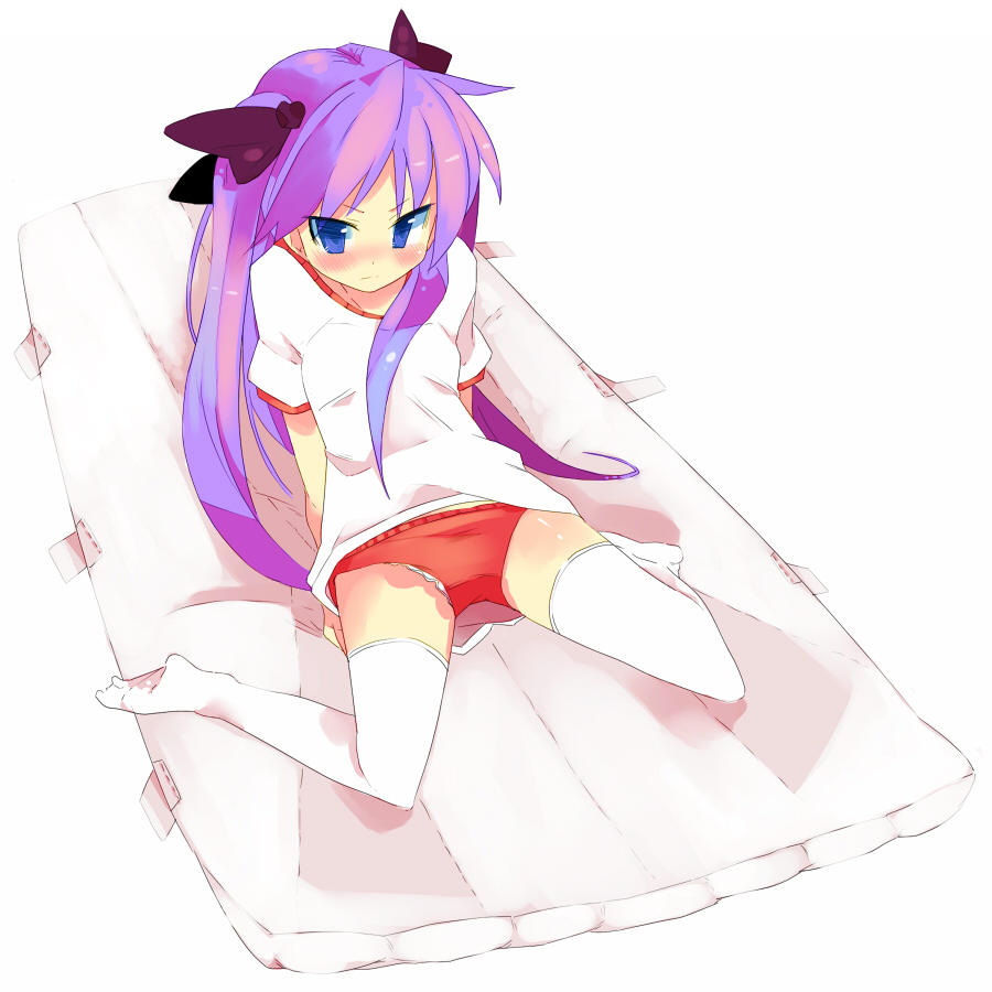 00s1girlblue eyesblushburumafemale focusgym uniformlong hairpantiespanties under burumapurple hairsittingsolothighhighsunderwearwarizawhite pantieswhite thighhighs