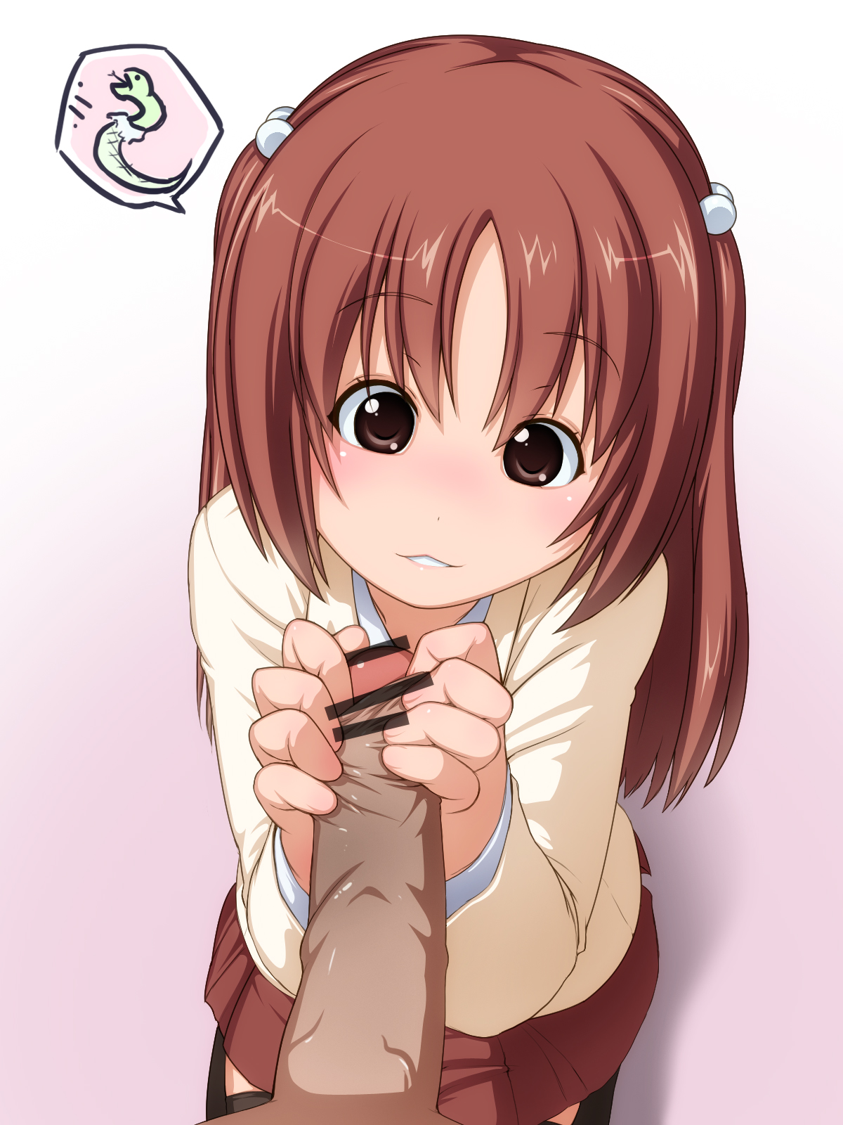 akazawa red, shikei, adachi honami, nyante chaton, game cg, 1girl, bed, blush, braid, brown eyes, brown hair, female focus, hair ribbon, hat, long hair, lying, parted lips, purple eyes, ribbon, skirt, solo
