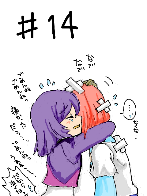00s1boy1girlblushcryingheterohuginnovatorsinnovators (gundam 00)japanese textpurple hairred hairsimple backgroundtearswhite background