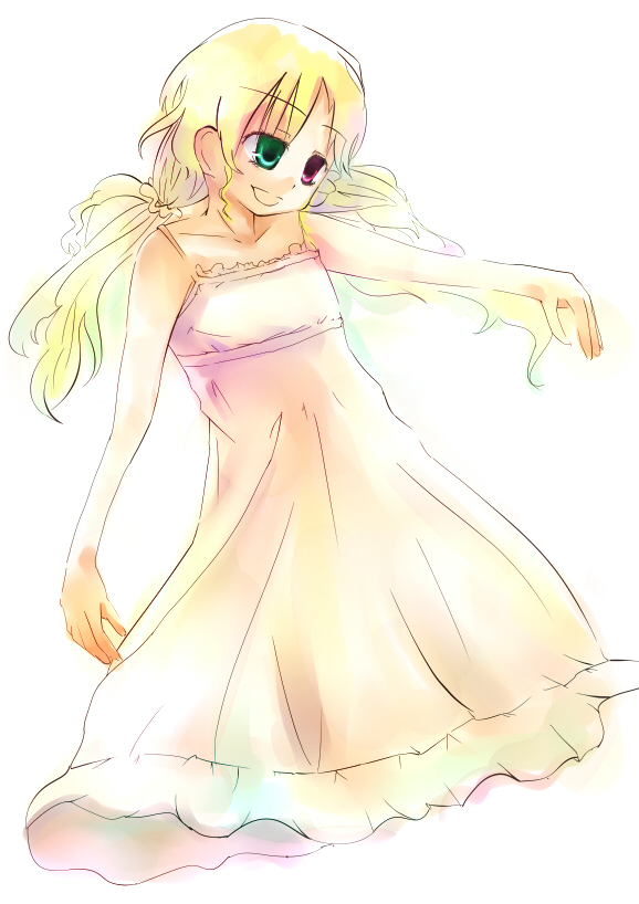 baifeidaiwang, original, highres, 1girl, animal ears, black collar, blue eyes, checkered clothes, checkered dress, closed mouth, collar, cowboy shot, dot nose, dress, expressionless, eyelashes, fake animal ears, frilled sleeves, frills, grey eyes, hair between eyes, hair ornament, hairband, hairclip, hand on own chin, heterochromia, juliet sleeves, light frown, long hair, long sleeves, looking at viewer, parallel hairclips, puffy sleeves, rabbit ears, red hairband, red ribbon, ribbon, ribbon-trimmed sleeves, ribbon trim, sample watermark, short dress, sidelocks, simple background, sleeve ribbon, solo, standing, v, watermark, wavy hair, white background, white dress, white hair