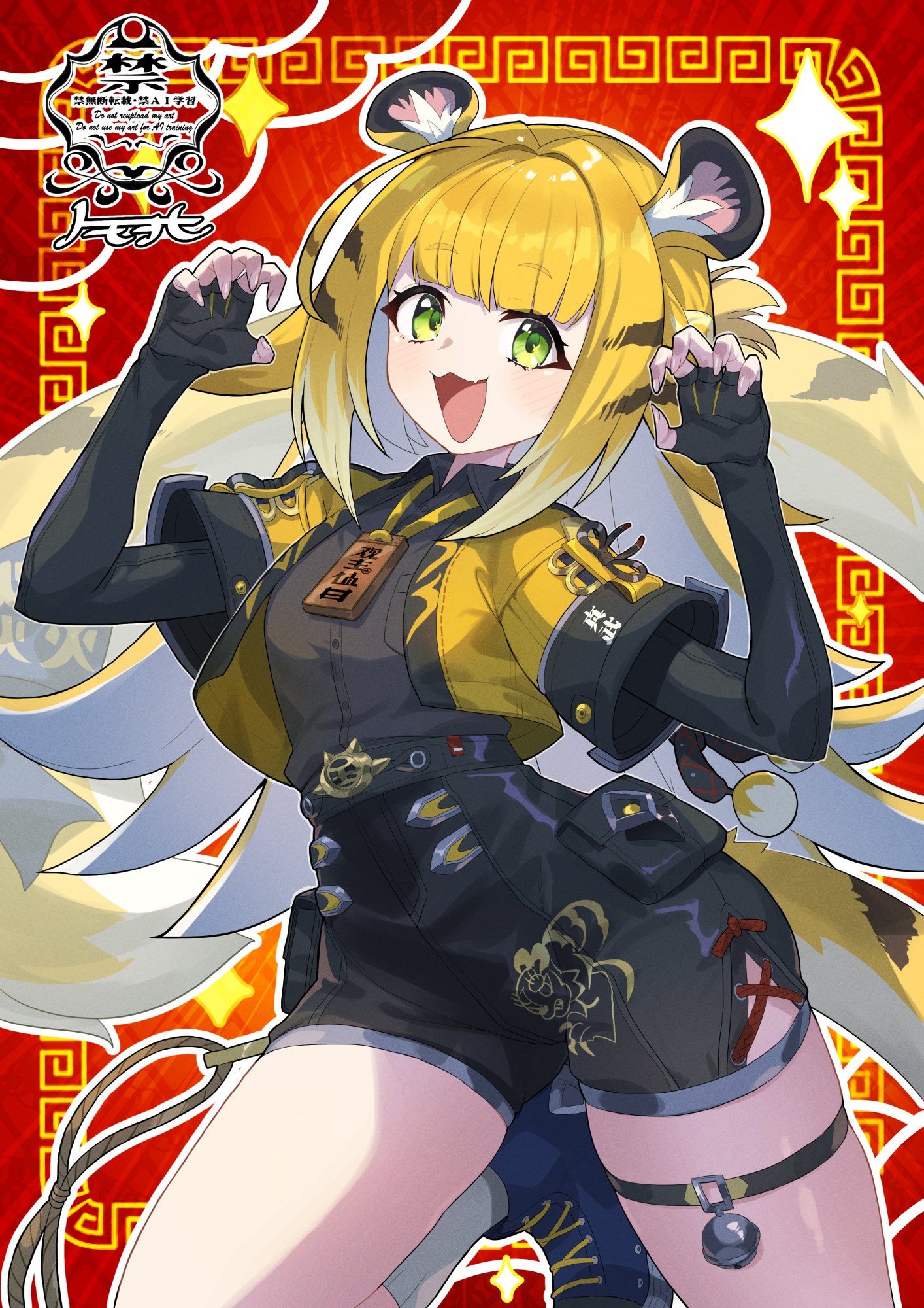 cynthia lane, overman king gainer, 00s, 1girl, blue eyes, brown hair, dress, female focus, gloves, head tilt, holding, juliet sleeves, long hair, long sleeves, looking at viewer, monochrome, ponytail, puffy long sleeves, puffy sleeves, red background, red theme, simple background, smile, solo, speech bubble, talking, text focus, twintails, upper body