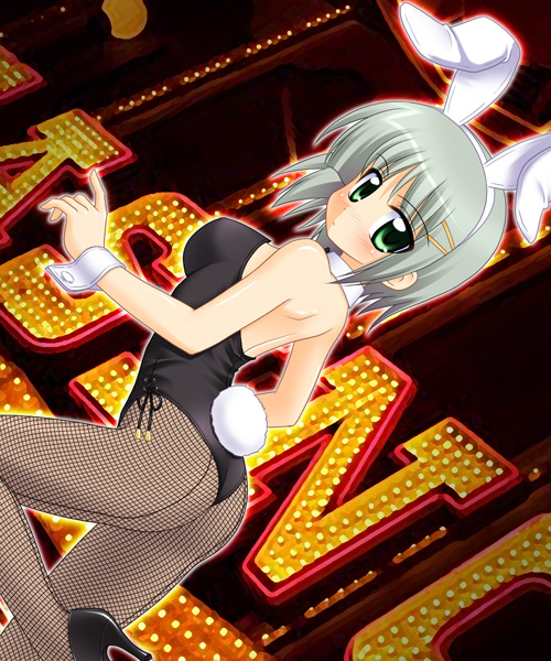 00sanimal earsassfake animal earsfishnet pantyhosefishnetsgreen eyeslooking backpantyhoseplayboy bunnyrabbit earsshort hairsolo