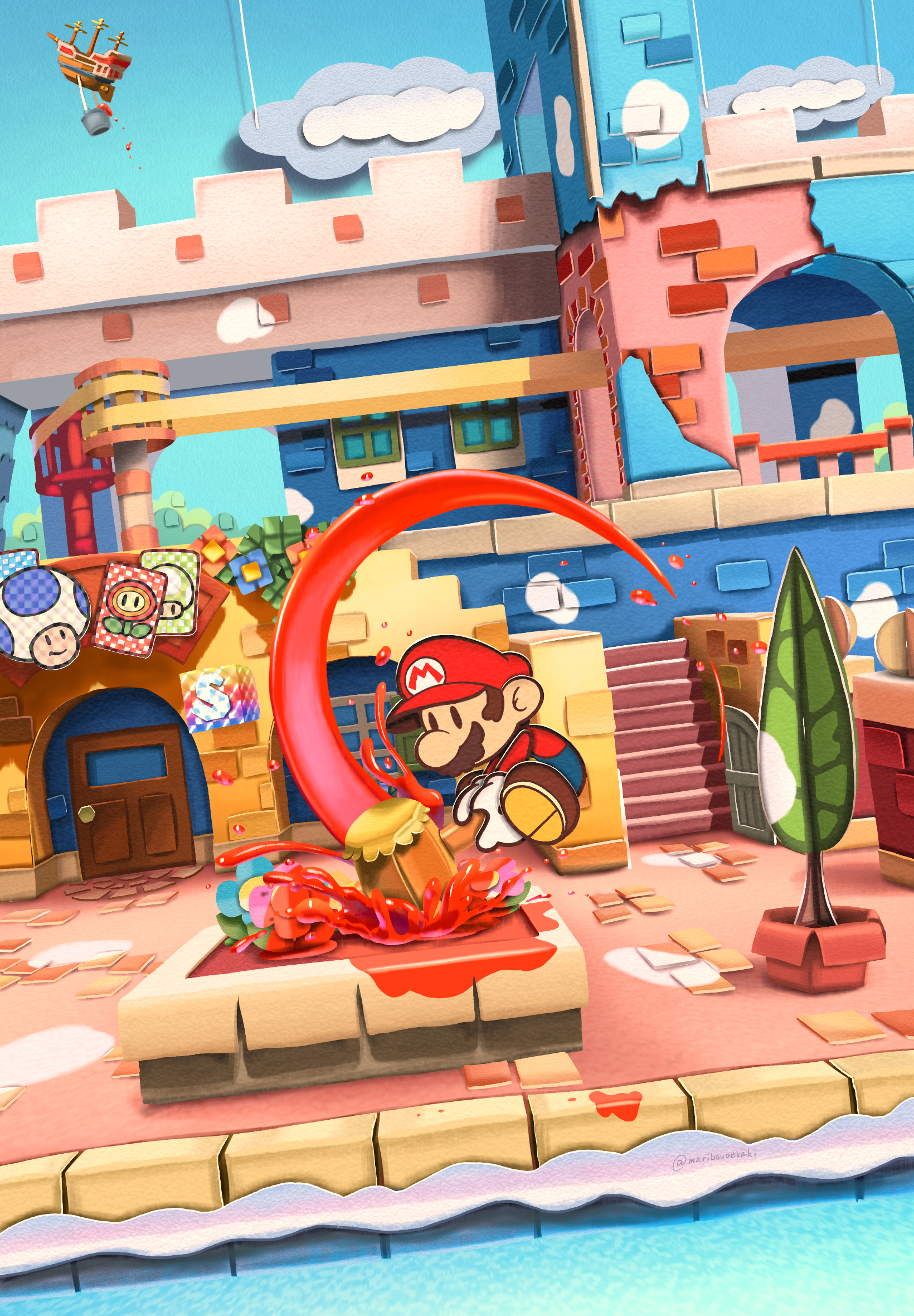 apricot sakuraba, broccoli (company), galaxy angel, galaxy angel rune, lowres, 00s, 1girl, female focus, flower, ga rune pose, looking at viewer, necktie, oekaki, open mouth, outline, poorly drawn, puffy sleeves, purple eyes, ribbon, short hair, smile, solo, twintails