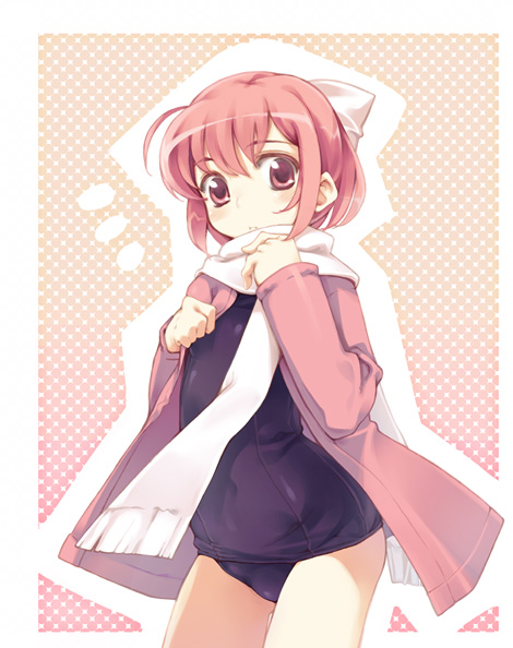 coatno pantsone-piece swimsuitopen clothesopen coatscarfschool swimsuitsoloswimsuitswimsuit under clothes