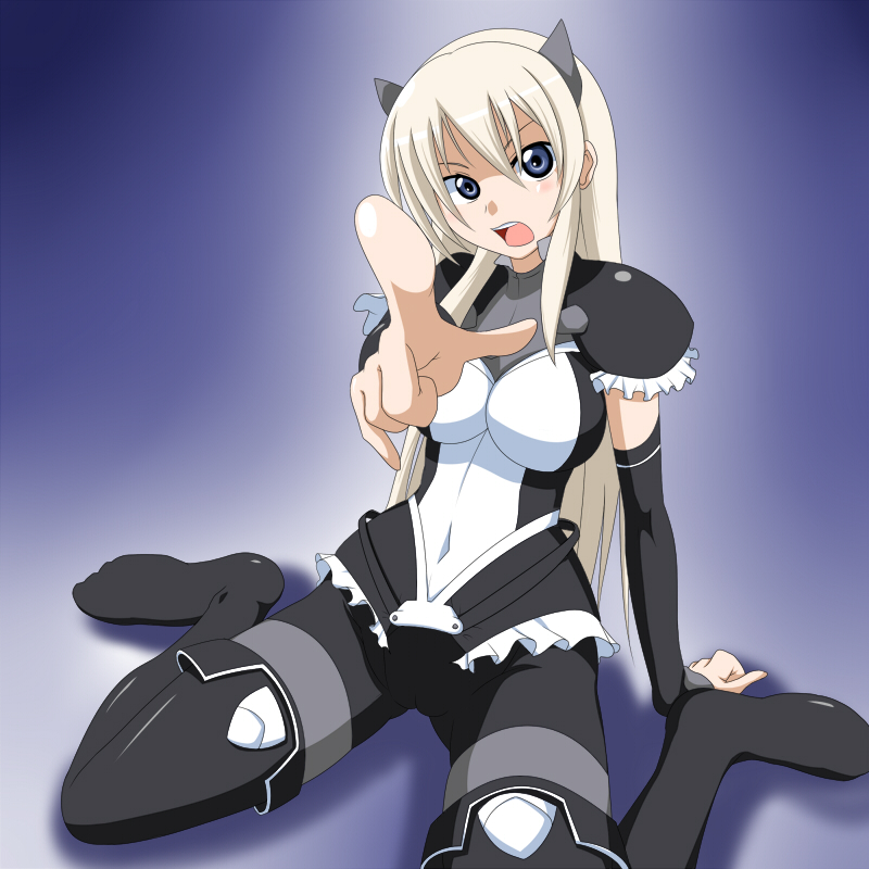 1girlanimal earsblonde hairblue eyesbootsbreastscat earscat girldetached sleevesfemale focusgradient backgroundlong hairpantyhosesolothigh bootsthighhighswhite background