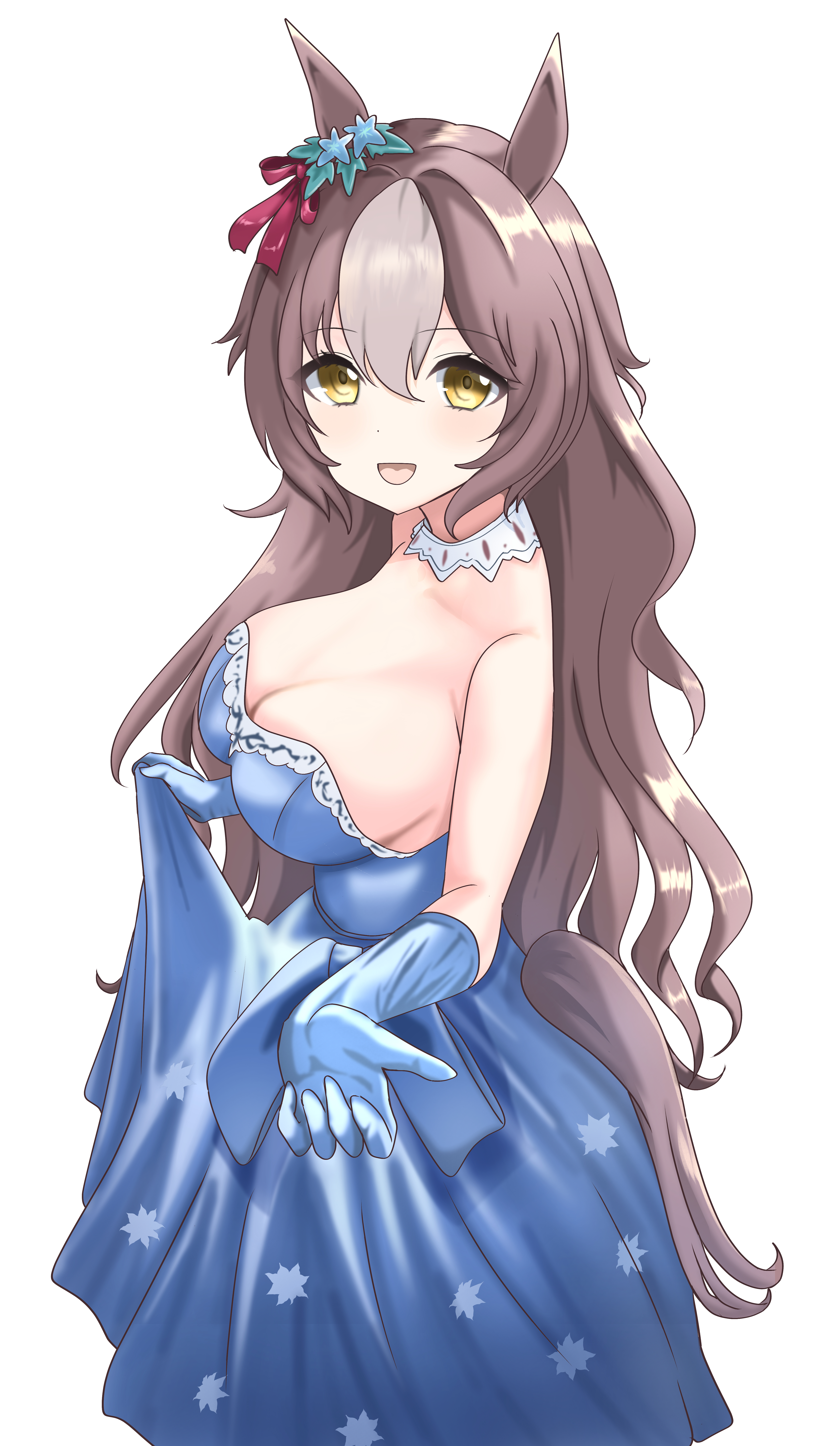 hatsune miku, yuki miku, yuki miku (2017), star night snow (vocaloid), vocaloid, absurdres, highres, 1girl, blue dress, blue eyes, blue hair, detached sleeves, dress, eri219flower, fingerless gloves, gloves, hair ornament, long hair, looking at viewer, open mouth, ribbon, smile, solo, star (symbol), twintails, very long hair