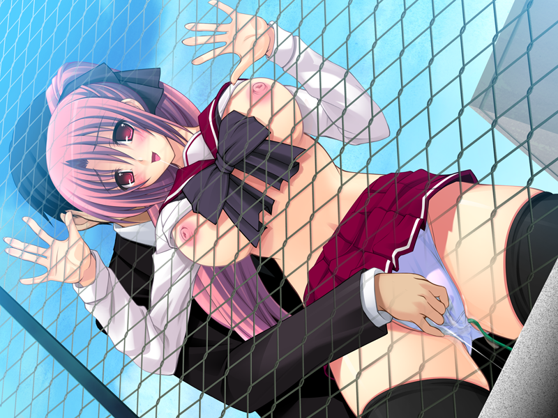 zatou, nonohara mizuki, shintaisou, game cg, 00s, 1girl, breasts, bust measuring, examination, green eyes, green hair, measuring, nipples, physical examination, solo focus, tape measure, topless female