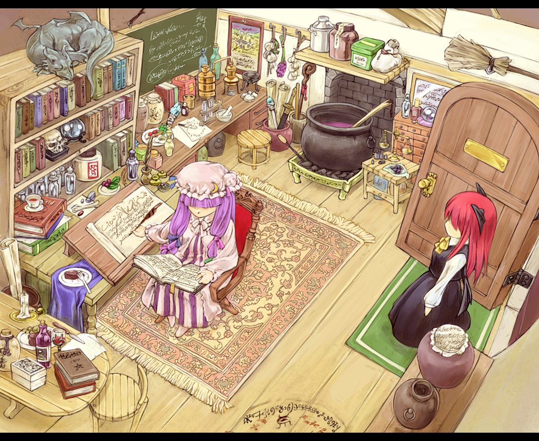 kooh (pangya), pangya, 1girl, black hair, female focus, loli, long hair, red eyes, ribbon, skirt, solo, thighhighs, twintails