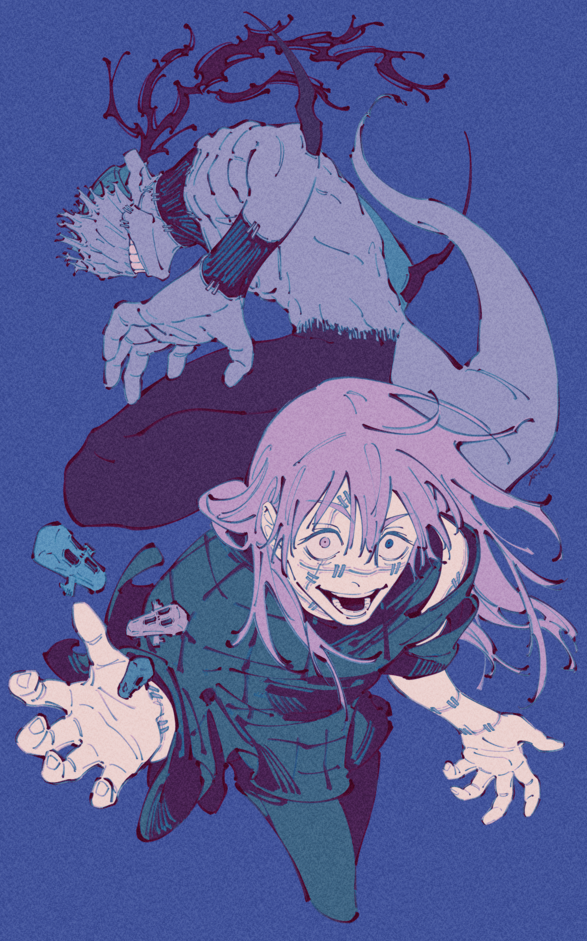 1boyhair between eyesheterochromialong hairmahito (instant spirit body of distorted killing) (jujutsu kaisen)stitched armstitched facestitched neckstitched wriststitchestail