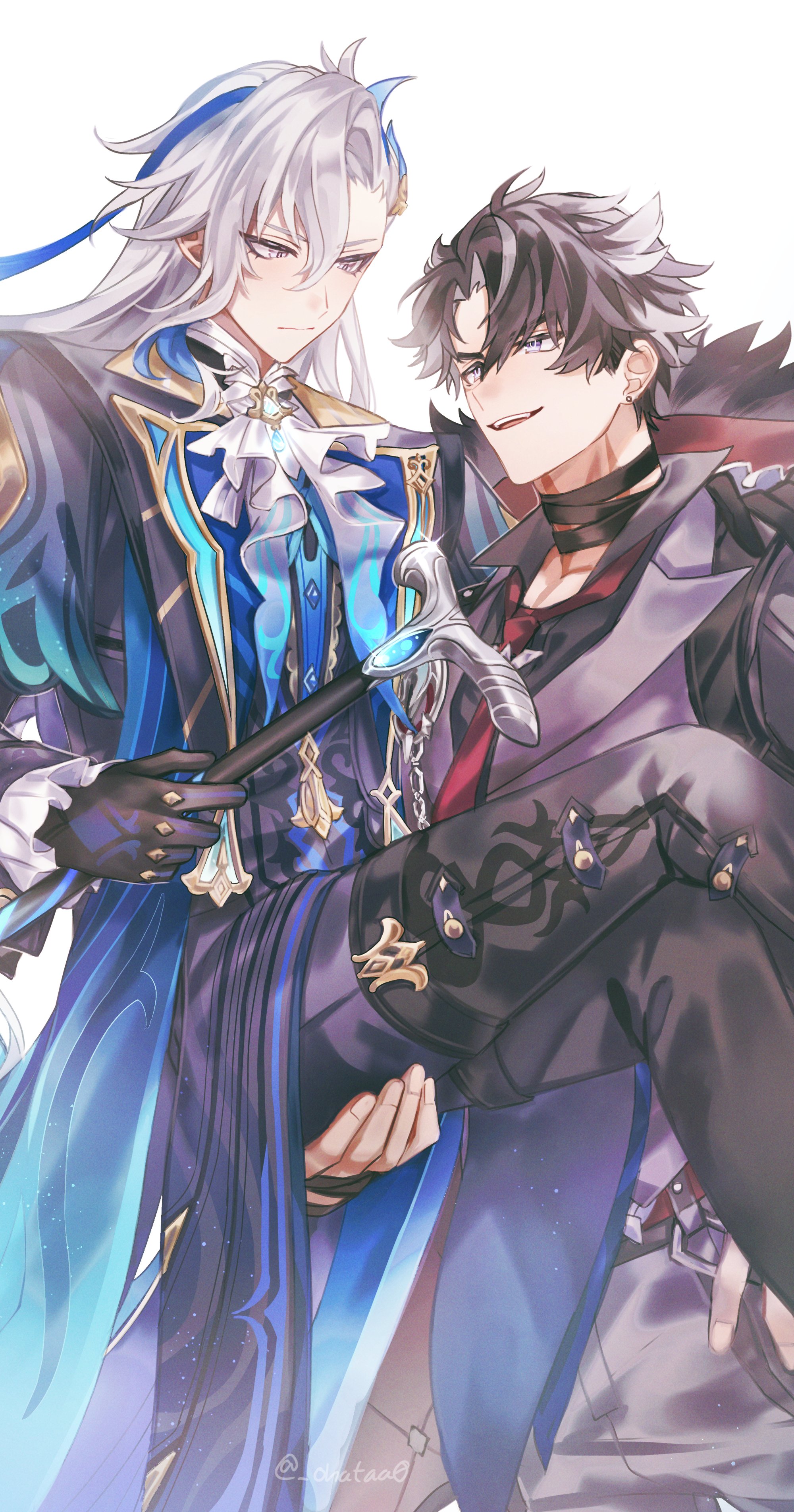 2boysartist nameascotasymmetrical bangsbandaged neckbandagesblack coatblack hairblack shirtblue coatblue eyesblue glovesblue hairblue pantsblushbroochcanecarryingclosed mouthcoatcoat on shoulderscollared shirtcowboy shotearringseye contactfacial scarfrilled sleevesfrillsfur trimfur-trimmed coatgaitersglovesgold trimgrey hairgrey pantsgrey vesthair between eyeshair ornamentholdingholding canejewelrylapelslight particleslong hairlong sleeveslooking at anothermale focusmulticolored hairmultiple boysnecktieopen mouthpantsparted bangspointy earsprincess carrypurple eyesred necktiescarscar on cheekscar on facescar on neckshirtshort hairsimple backgroundsleeve cuffssmilestandingstreaked hairstud earringsteeththighhigh gaitersthighhighstwitter usernametwo-sided coattwo-sided fabricupper teeth onlyv-shaped eyebrowsvery long hairvestwhite ascotwhite backgroundwhite hair