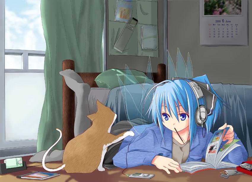 kurafuji sachi, hatsune miku, kaito (vocaloid), vocaloid, bad id, bad pixiv id, 1boy, 1girl, beach, blue hair, day, green hair, long hair, ocean, ribbon, short hair, twintails
