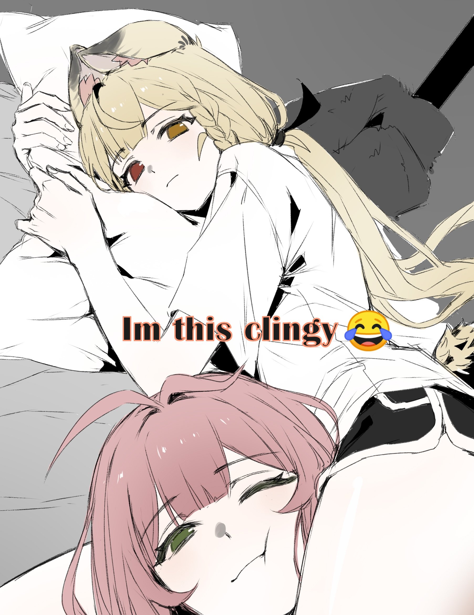 hahahano927, miorine rembran, suletta mercury, gundam, gundam suisei no majo, commentary request, highres, unfinished, 2girls, art program in frame, black jacket, blue jacket, closed eyes, collared shirt, earrings, grey eyes, grey hair, jacket, jewelry, long hair, multiple girls, open mouth, red hair, shirt, short hair, simple background, smile, stud earrings, thick eyebrows, upper body, white background, white shirt
