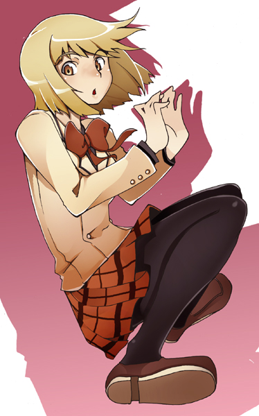 00s1girlblonde hairblushfemale focusfull bodygradient backgroundpantyhoseschool uniformshort hairskirtsolo