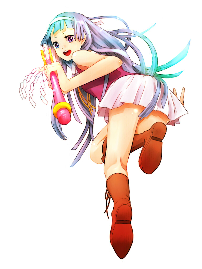 00s1girlblunt bangsbootsfemale focushairbandlong hairlooking backpleated skirtpurple eyespurple hairrunningskirtsolowandwhite skirt