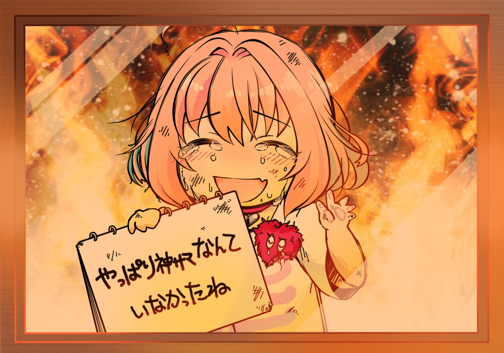 1girlagainst glassblushclosed eyescollarcryingfacing viewerfangfirehaichu (user ayev2425)hand on glassholdingholding notepadlight particlesmessy hairnotepadopen mouthparodyperilpink hairsadsad smileshirtshort hairskin fangsoloupper bodywhite shirtwindow