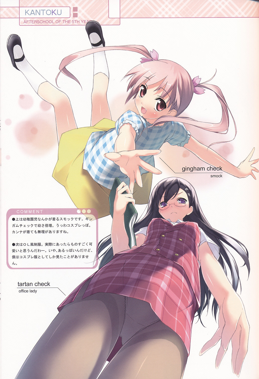 1girlblack hairblue eyesblushbrown pantyhoseembarrassedfangfrom belowglasseslong hairoffice ladypantiespanties under pantyhosepantyhosepantyshotpink eyespink hairsiblingssisterssolo focusthighband pantyhosetwintailsunderwearupskirt