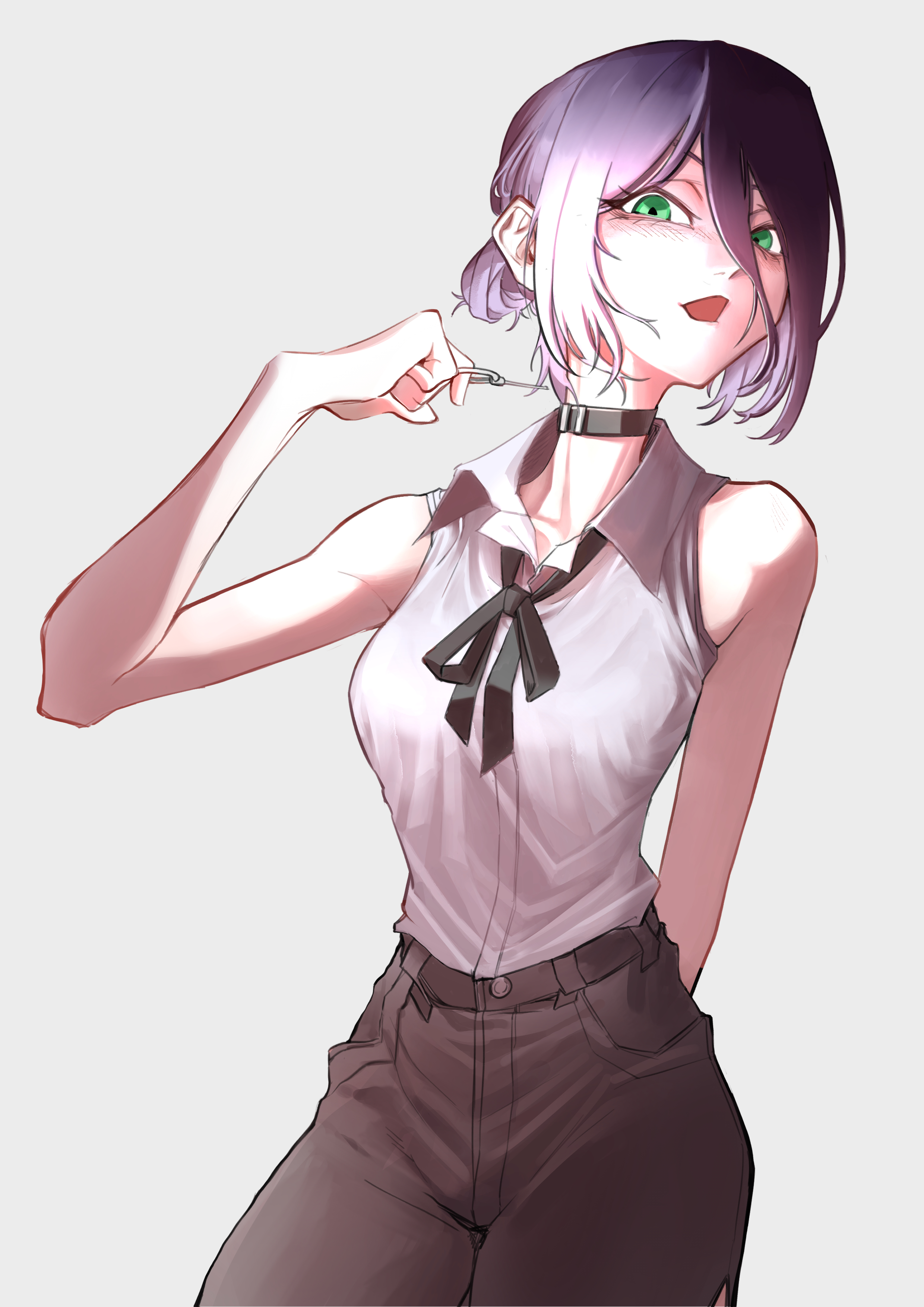 rumi (kpop demon hunters), kpop demon hunters, highres, 1girl, artist name, body markings, braid, braided ponytail, demon girl, earrings, eyeshadow, jewelry, makeup, mascara, rayenliu the hueman, sleeveless, sleeveless turtleneck, solo, turtleneck
