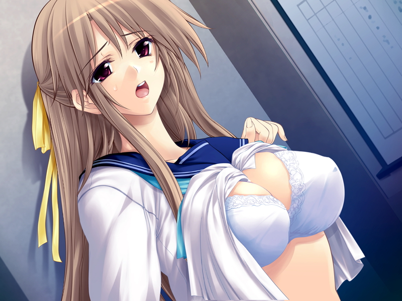 cl oor, yukihana lamy, hololive, 1girl, bare shoulders, bent over, black pants, blush, breasts, cleavage, large breasts, long hair, looking at viewer, navel, pants, pointy ears, smile, solo, sports bra, yellow eyes