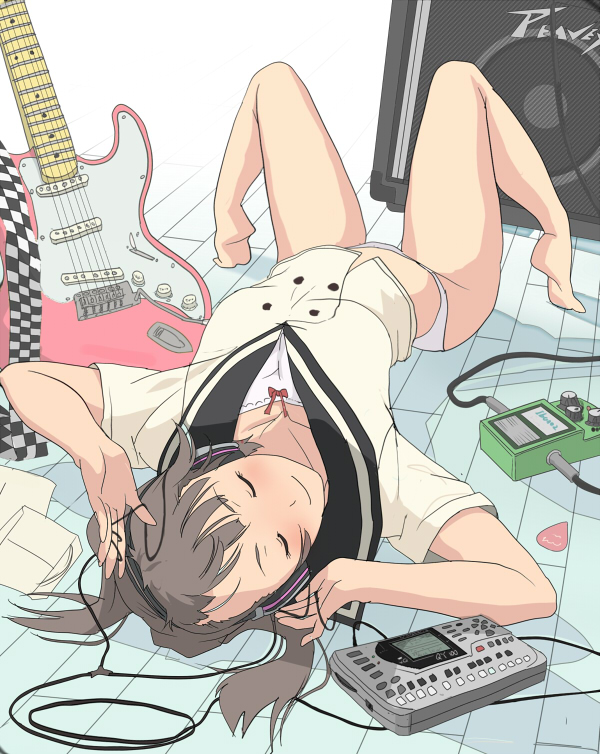 fujii akiko, 1girl, breasts, brown eyes, brown hair, covering crotch, covering privates, female focus, large breasts, long hair, lying, nipples, nude, nude cover, photo (object), solo, spread legs
