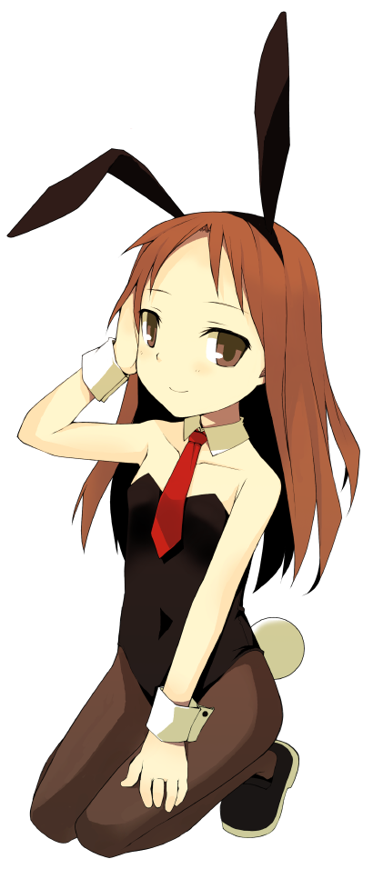 1girlanimal earsbrown eyesbrown hairfake animal earsfemale focuskneelinglong hairnecktiepantyhoseplayboy bunnyrabbit earssmilesolowrist cuffs