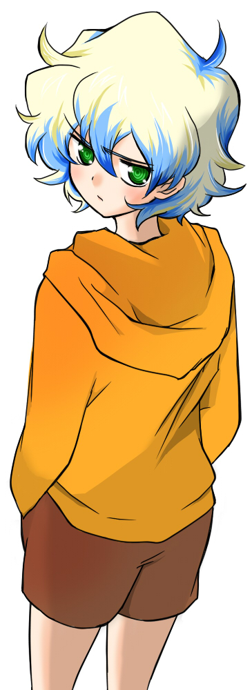 mzxiaxi, kujou sara, scaramouche (genshin impact), wanderer (genshin impact), genshin impact, 1boy, 1girl, arms at sides, black bodysuit, black bridal gauntlets, black hair, black shorts, blank eyes, blue cape, blue kimono, blunt ends, bodysuit, bridal gauntlets, cape, detached sleeves, food, furisode, holding, holding plate, japanese clothes, juban, kimono, looking at another, nervous sweating, plate, purple sash, sash, shorts, smile, sparkle, sweat, sweatdrop, trembling, white kimono, white sleeves