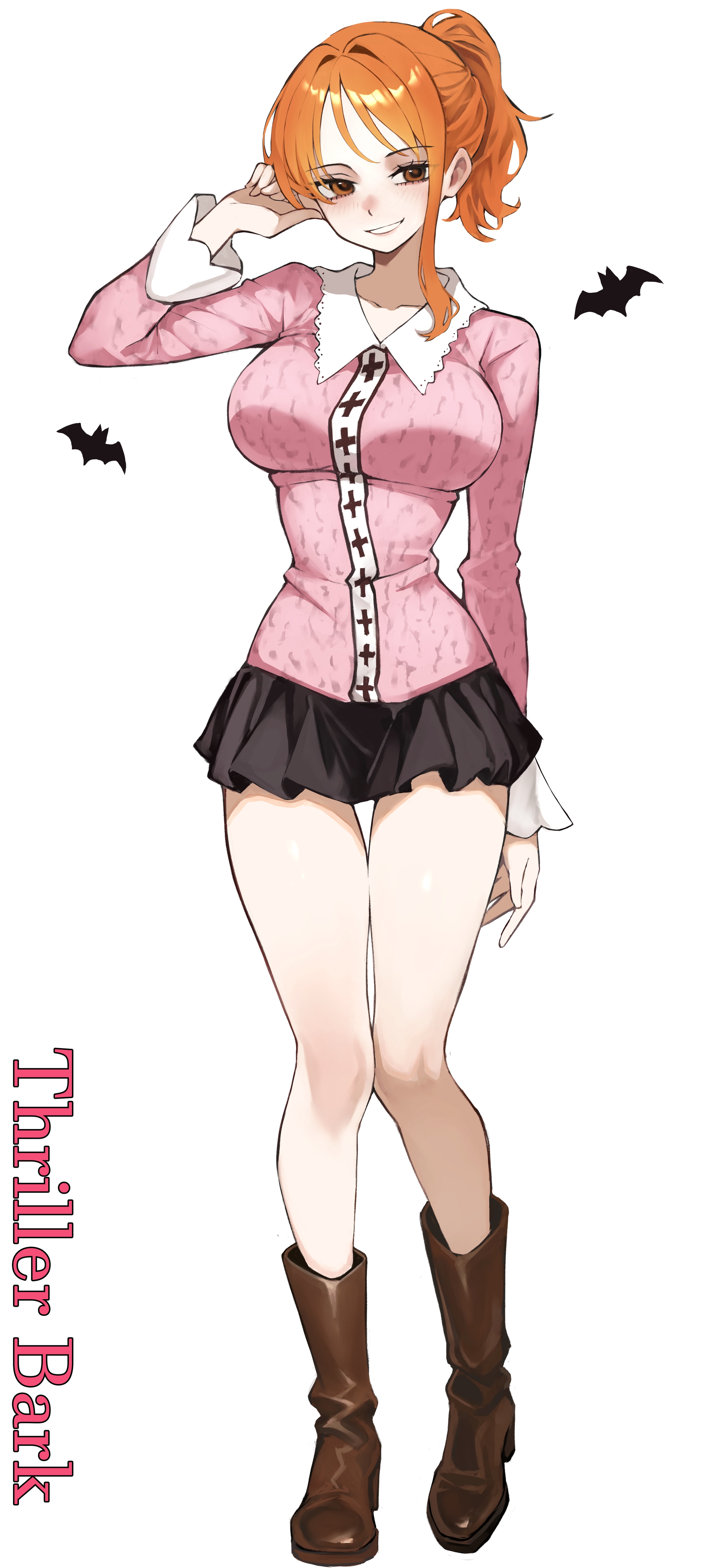 skrillex li, kneesocks (psg), panty & stocking with garterbelt, highres, 1girl, bare shoulders, black thighhighs, black wings, blue hair, breasts, collar, colored skin, demon girl, demon horns, demon tail, demon wings, fang, fingerless gloves, glasses, gloves, green eyes, horns, jewelry, large breasts, long hair, looking at viewer, low wings, pointy ears, ponytail, red skin, simple background, single horn, smile, solo, spiked collar, spiked gloves, spiked thighhighs, spikes, studded armlet, tail, thighhighs, white background, wings