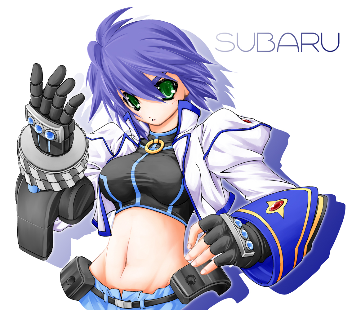 tanaka (cow), fantasy earth zero, armor, belt, brown eyes, brown hair, elbow gloves, fingerless gloves, gauntlets, gloves, hand on own hip, hat, hip focus, midriff, neckerchief, smile, solo, thighhighs, zettai ryouiki