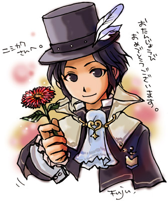 carnelian, white angel, game cg, 1girl, blonde hair, female focus, flower, glasses, long hair, school uniform, serafuku, solo, yellow eyes