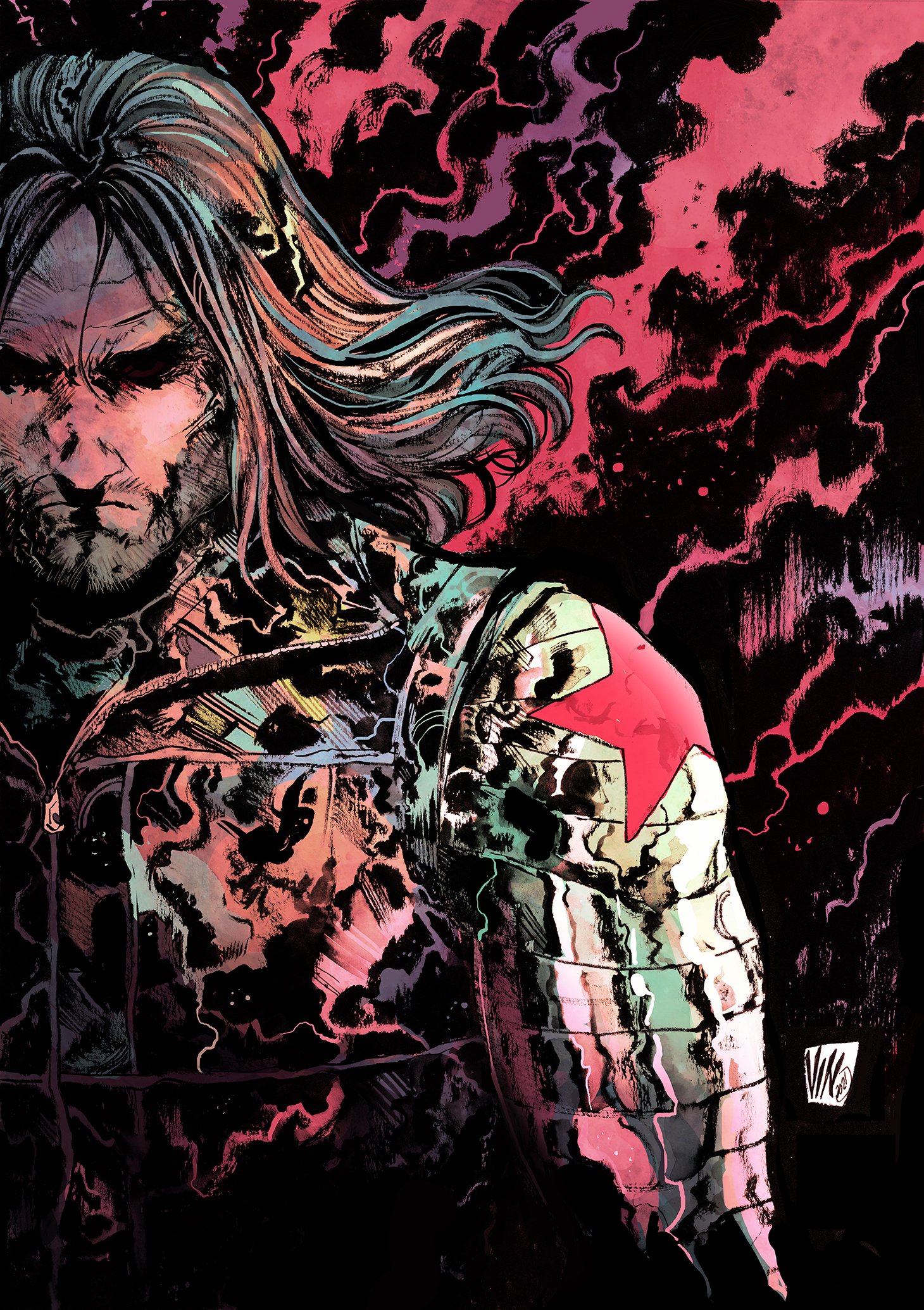 1boyabstract backgroundartist namebrown hairclosed eyesdark backgroundfacial hairmale focusmechanical armsprosthesisprosthetic armred backgroundred starshort hairsignaturesolosolo focusstar (symbol)superhero costumeupper bodywestern comics (style)