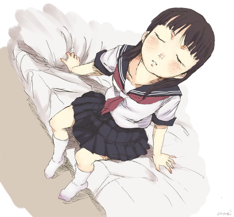 enma ai, jigoku shoujo, lowres, 00s, black hair, red eyes, school uniform, serafuku