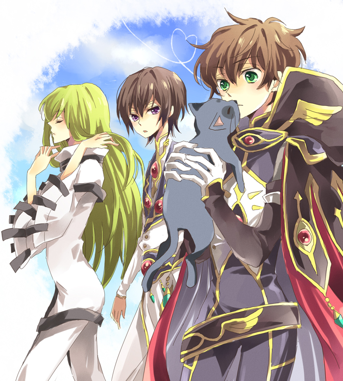 izumi neneko, len (tsukihime), miu, miu (dears), ren (dears), dears, absurdres, highres, 00s, 3girls, apron, blush, brown hair, dress, frills, glasses, green hair, long hair, maid, maid apron, multiple girls, pink hair