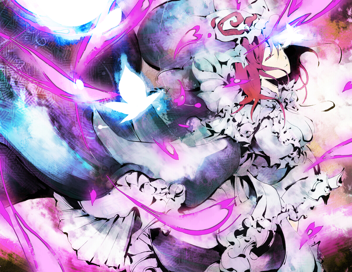 kazami mizuho, onegai teacher, breast hold, anime screenshot, stitched, third-party edit, 00s, 1girl, breasts, cleavage, crossed arms, female focus, large breasts, long hair, lying, naked towel, on back, purple eyes, red hair, solo, teacher, towel