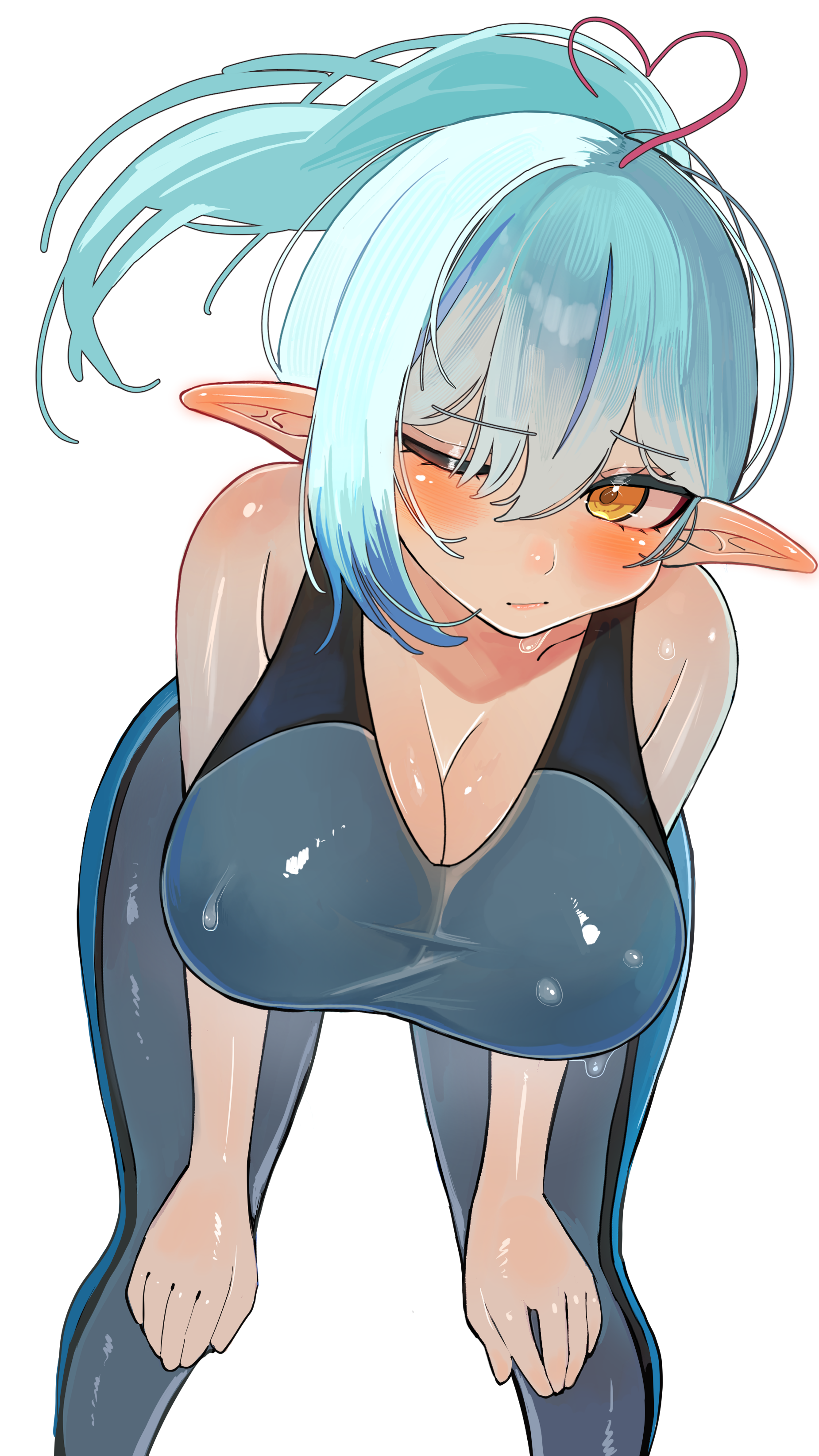 saui, amamiya sakurako, psyren, bad id, bad pixiv id, 1girl, blue eyes, blue hair, blush, clothes lift, clothing aside, cowgirl position, flat chest, girl on top, glasses, panties, panties aside, penis, pussy, scarf, sex, skirt, skirt lift, solo focus, straddling, striped clothes, striped panties, striped scarf, striped thighhighs, thighhighs, uncensored, underwear, upskirt, vaginal