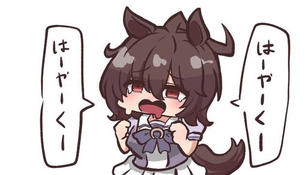 1girlahogeanimal earsbowbrown hairchibidroolinghair between eyeshands uphorse earshorse girlhorse taillooking at viewermouth droolopen mouthpleated skirtpuffy short sleevespuffy sleevespurple bowpurple shirtred eyesschool uniformshirtshort sleevessimple backgroundskirtsolotailtearstracen school uniformwavy mouthwhite backgroundwhite skirt